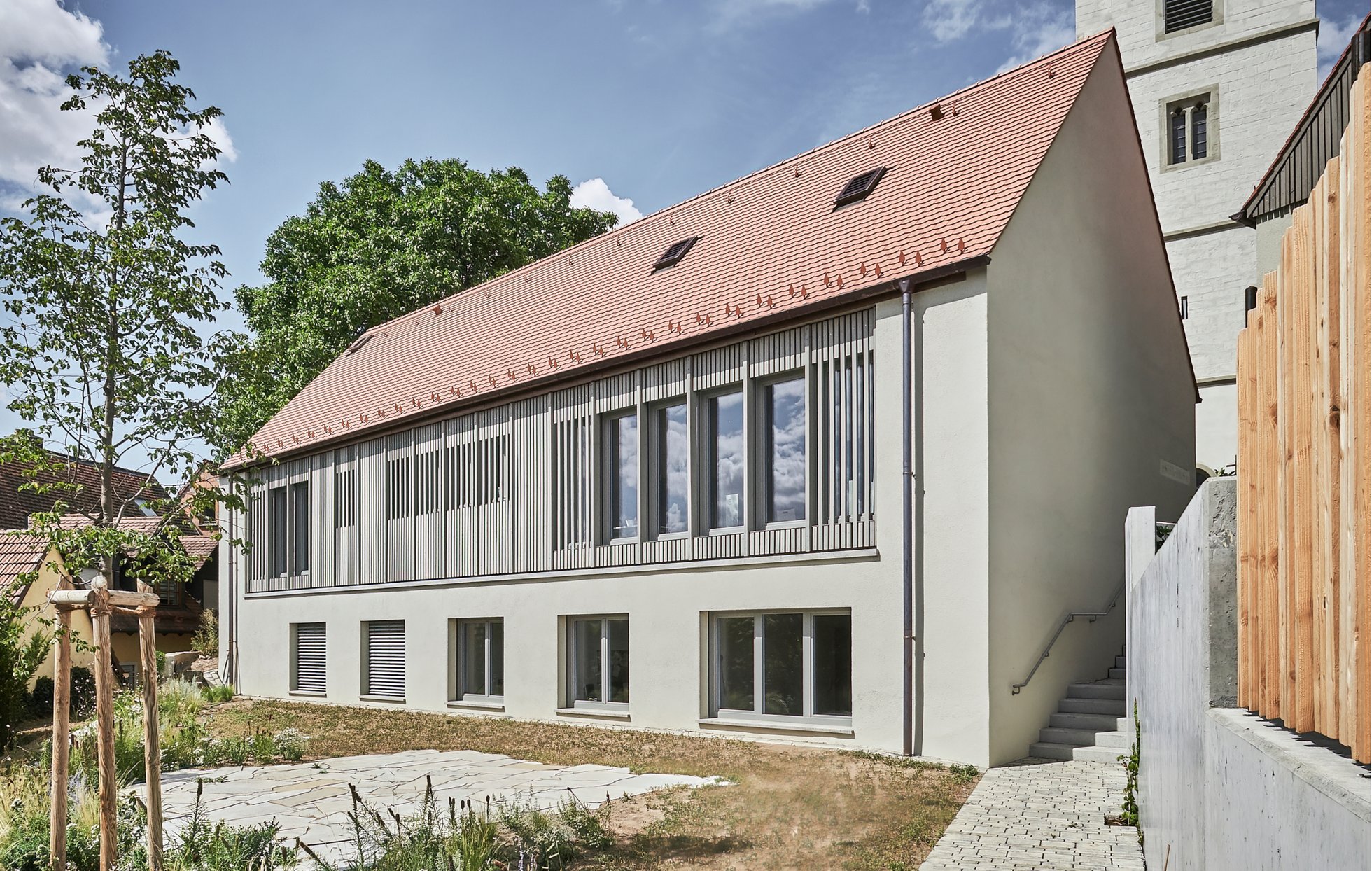 Mit dem Neubau von Pfarr- und Gemeindehaus gelingt eine feinfühlige Ergänzung des historischen Ensembles zu einem neuen, stimmigen Ganzen. Die beiden Neubauten greifen die baukulturellen Fäden des Ortes in Formensprache, Proportion und Materialität wie selbstverständlich auf, ohne dabei in die vordergründige Aufdringlichkeit platter Modernität zu verfallen. Im subtilen baulichen Dialog mit dem Vorgefundenen entsteht ein offener, einladender Raum, der von der Gemeinschaft mühelos angenommen werden kann. Ein gelungenes Beispiel für respektvolles Bauen im ländlichen Raum, das Sinn und Identität stiftet und zugleich eine authentische und ansprechende Verbindung zwischen dem Alten und Neuen herstellt.