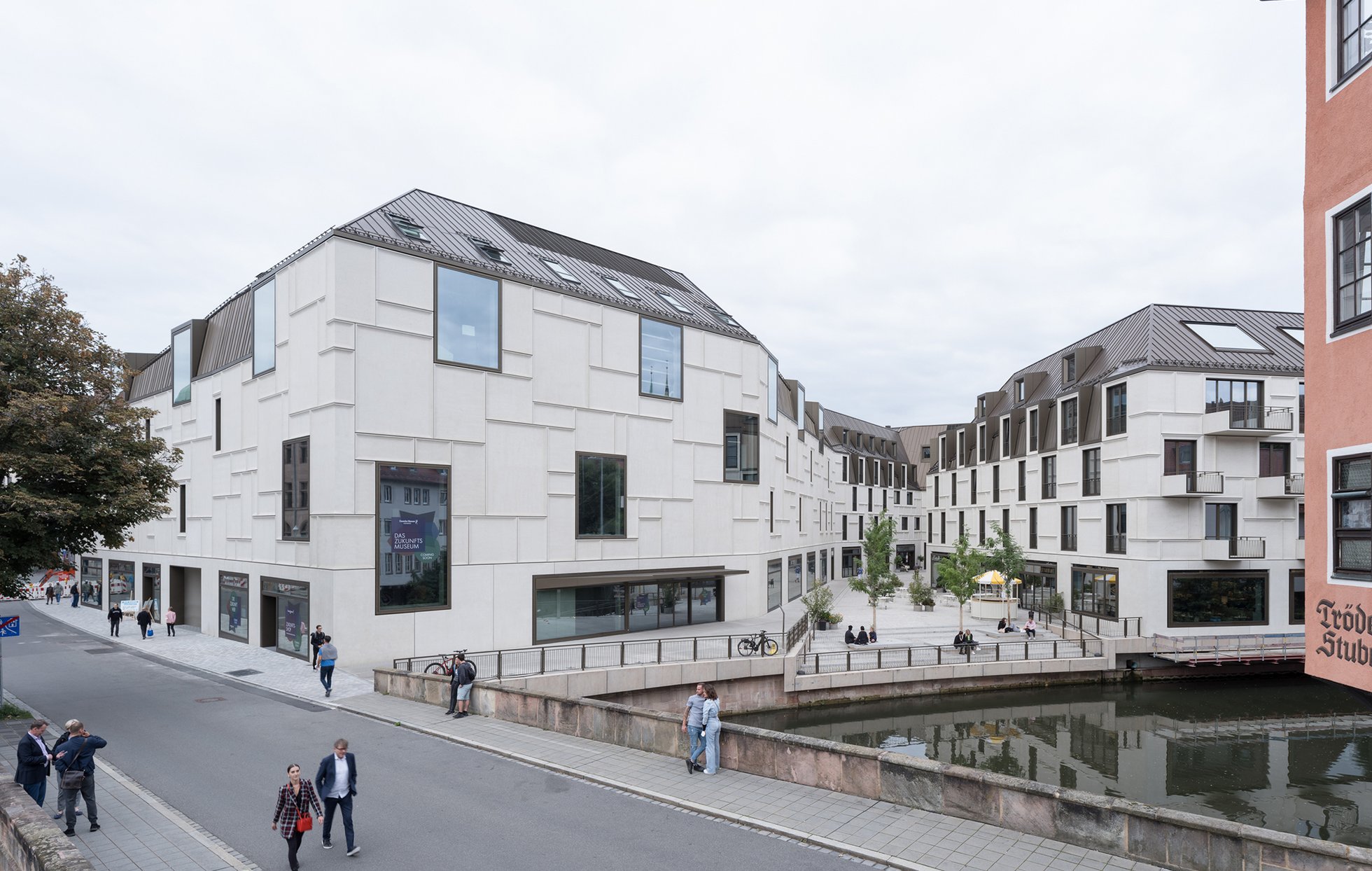 Das bauliche Konzept greift Bezüge zum bestehenden Stadtgefüge auf und verknüpft sie geschickt. Die vielfältige Nutzung aus Ausstellung, Hotel, Gastronomie, Läden und Bars belebt die Erdgeschosse und wertet den öffentlichen Raum auf. Die gewählte Architektursprache aus hellem Betonwerkstein mit Ornamentik wird als zeitgemäße Interpretation der Fachwerkbautradition Nürnbergs verstanden und wird in Maßstäblichkeit und Gestaltung kontrovers diskutiert.