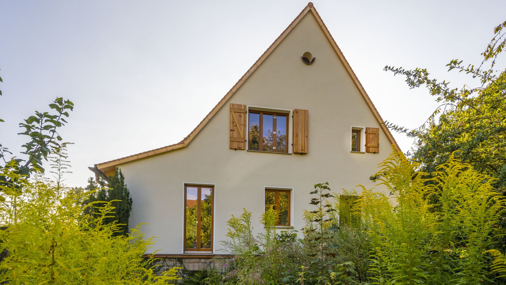Der eingeschossige, gedrungen erscheinende Altbau übernimmt durch das Aufsetzen eines abgeschleppten, steilen Satteldaches eine traditionelle Dachform des fränkischen Hauses, die das Wohnhaus in die fränkische Kulturlandschaft verortet.