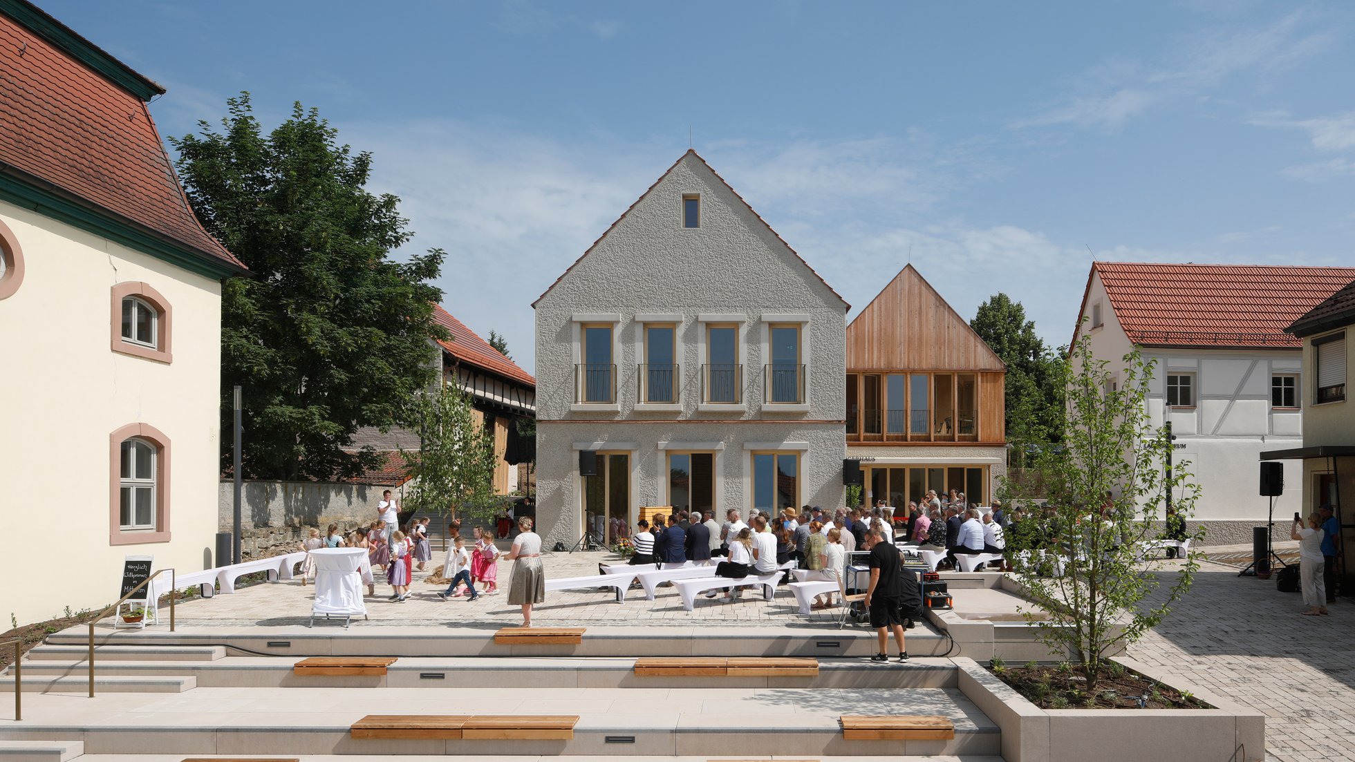 Orte für die Gemeinschaft zu bauen ist ein Privileg und zugleich eine große Verantwortung. Diese Aufgabe kreislaufgerecht und sozial nachhaltig zu erfüllen, ist ein vorbildhafter Beitrag für die Gegenwart und die Zukunft. Im engen Dialog mit der Bevölkerung wurde in Niederwerrn eine neue Ortsmitte gestaltet, die neben Bürgersaal und Vereinsraum auch ein Café, ein Museum und eine innovative Energiescheune umfasst. Die Innenräume überzeugen durch eine hohe gestalterische Qualität in Konstruktion, Materialität und Farbgebung.